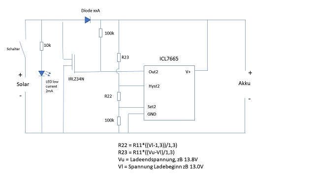 Youtube hilft da weiter. Ich habe mich für ein. Einfachst Solar-Laderegler 12V.